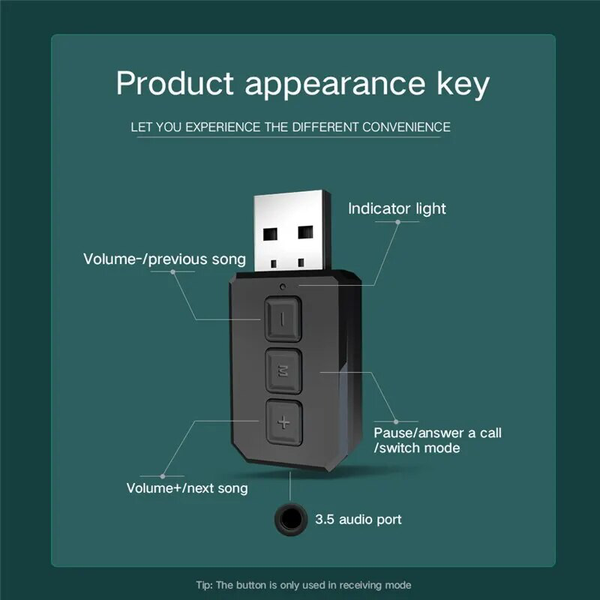 Wanneer u het op uw computer gebruikt, kan worden gebruikt om Bluetooth-headsets of Bluetooth-luidsprekers aan te sluiten. Geen behoefte aan audiokabel en geen stuurprogramma vereist, plug and play (alleen audio kan geen gegevens verzenden).
